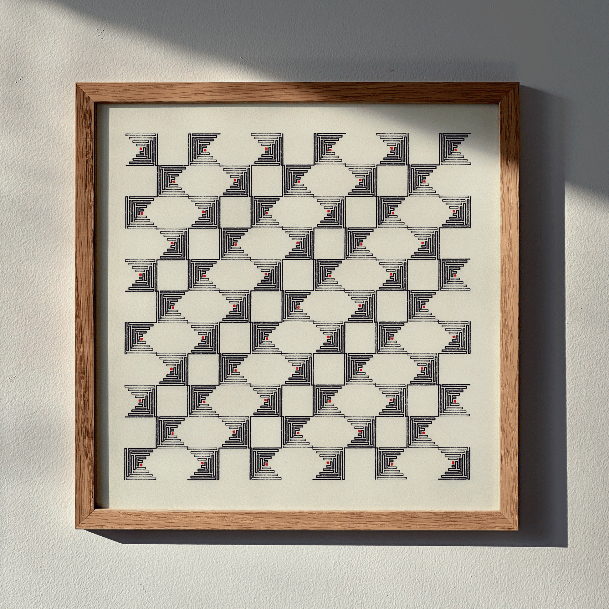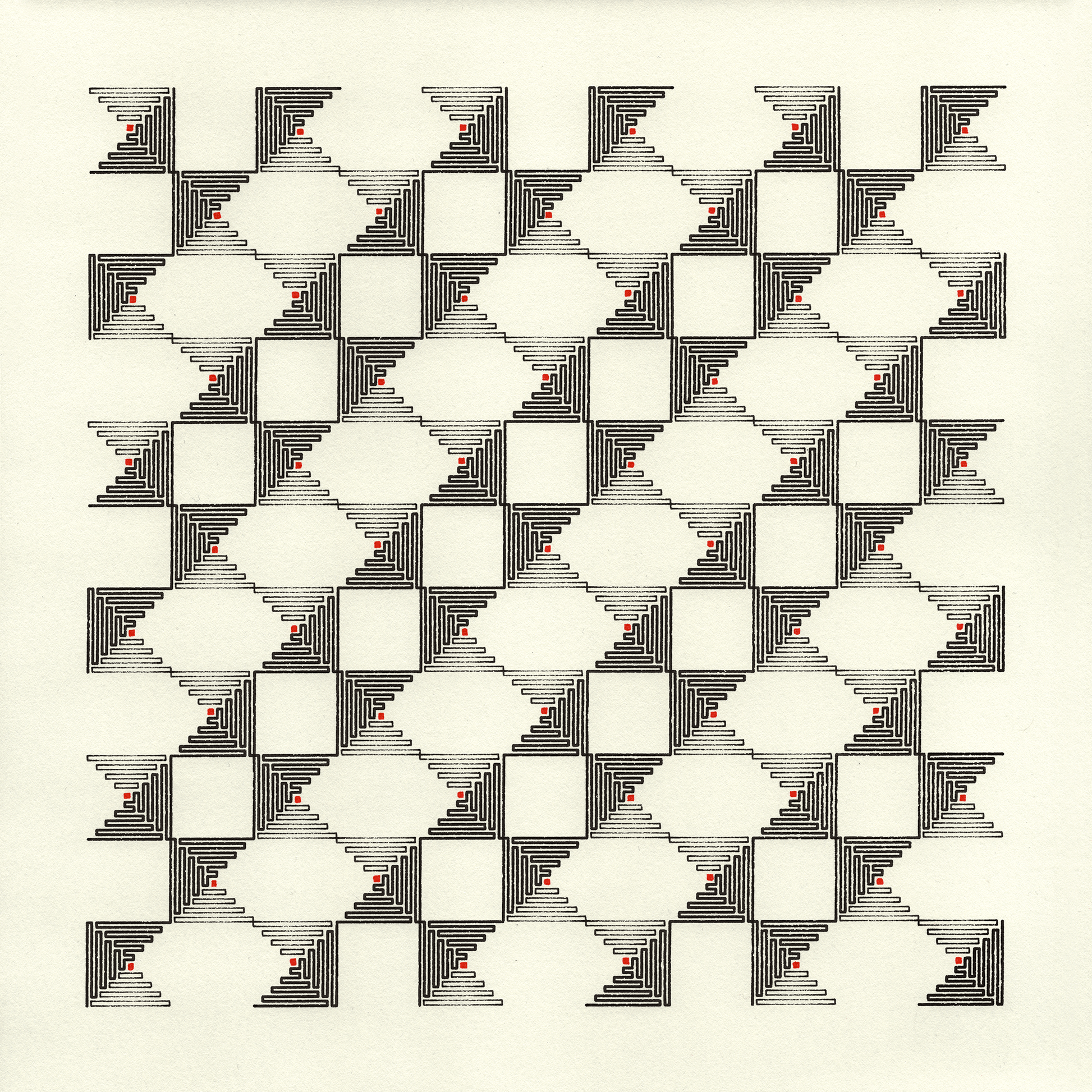 - Pen plotted original drawing with black ink, then hand-finished with red ink. Line texture can slightly differ from the photos as the drawing method produces no two artworks that are exactly alike.